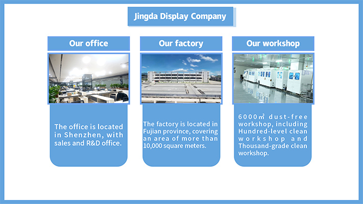 Jingda Display to profesjonalny producent zajmujący się badaniami i rozwojem, produkcją i sprzedażą modułów wyświetlaczy LCD, posiadający bogate doświadczenie w dostarczaniu niestandardowych rozwiązań wyświetlających dla dziedzin przemysłowych. Koncentrujemy się na zaspokajaniu spersonalizowanych potrzeb klientów, kierując się zasadą „najpierw jakość, zorientowanie na klienta” i angażując się w dostarczanie wysokiej jakości, stabilnych i niezawodnych produktów wyświetlających. Wyposażona w zaawansowany sprzęt produkcyjny i profesjonalny zespół badawczo-rozwojowy, Jingda Display ma możliwość przeprowadzenia pełnego dostosowania procesu, od projektu produktu, opracowania próbki po masową produkcję.